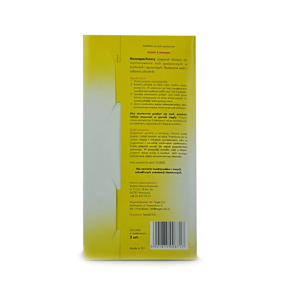 Bezzapachowy preparat s³u¿¹cy do monitorowania moli spo¿ywczych w kuchniach i spi¿arniach.